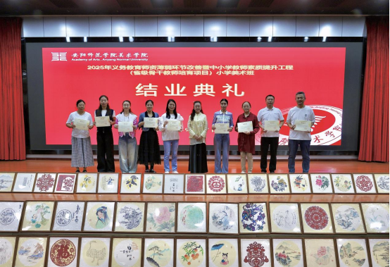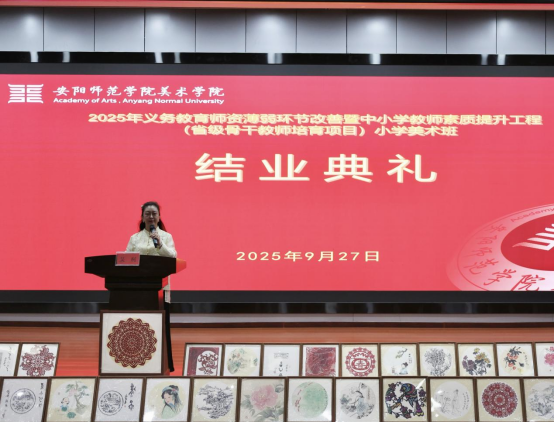 2025年9月27日下午两点三十分,我院于锦江之星一楼会议厅举办了2025年义务教育师资薄弱环节改善暨中小学教师素质提升工程省级骨干教师培育项目----小学美术班结业典礼暨作品汇报展。本次活动由我院国画系主任、学科班主任吴柯老师和生活班主任孙鹏老师共同主持,全体51名省培班学员参加。