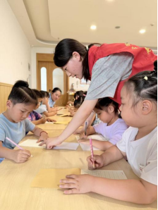 教学过程中,大学生充分发挥专业优势,为孩子们带来了形式多样的书法与美术课程。课堂上,学生们化身“小老师”,既耐心讲解基础专业知识——从美术课的线条勾勒、色彩搭配技巧,到书法课的握笔姿势、书写规范要领,均通过生动示范帮助孩子理解;在动手实践环节,他们更是走到孩子身边,手把手辅导绘画创作,及时纠正错误的握笔、书写姿势,用细致耐心的引导激发孩子的艺术兴趣。课程结束后,学子们还会逐一对孩子们的作品、书写作业进行批改,结合每个孩子的特点给出针对性改进建议,助力幼儿在艺术学习中稳步提升。