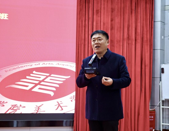 仪式伊始,安阳师范学院美术学院党委书记连城致欢迎辞,介绍美术学院承办教师培训的扎实积淀与成果,强调本次培训既是提升教师专业技艺的实战平台,也是全省中小学书法教育工作者交流协作、共享资源的重要桥梁。连城书记还寄语学员,要以深耕精进的态度钻研理论、打磨技能,主动分享经验、激发创新思维,培训后将所学转化为教学实践,助力河南省中小学书法(甲骨文)教育水平提升。