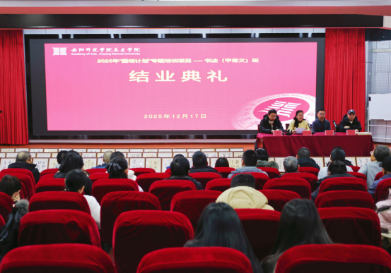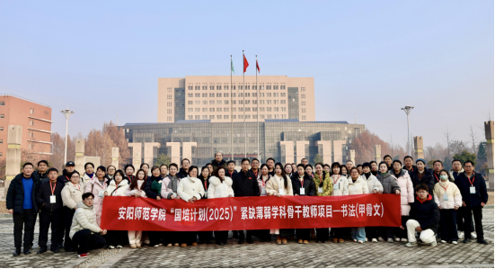 12月17日,2025年“国培计划”专题培训项目(紧缺薄弱学科项目)——书法(甲骨文)结业典礼圆满落幕,学科班主任吴柯、孙鹏,生活班主任李朝阳、陈家毅和来自河南省各地市的100名参训教师齐聚一堂,总结甲骨文书法培训成果,共话传统文化传承与教学创新之路。