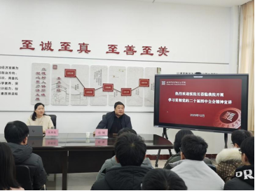 为全面深入学习领会党的二十届四中全会精神,切实将全院师生党员的思想及行动统一到全会部署上来。12月23日下午,我院于和园B一楼会议室召开专题宣讲会。会议特邀学习贯彻党的二十届四中全会精神校党委宣讲团成员、外国语学院院长张荣花作宣讲报告,学院全体师生党员参加会议,党委书记连城主持会议。