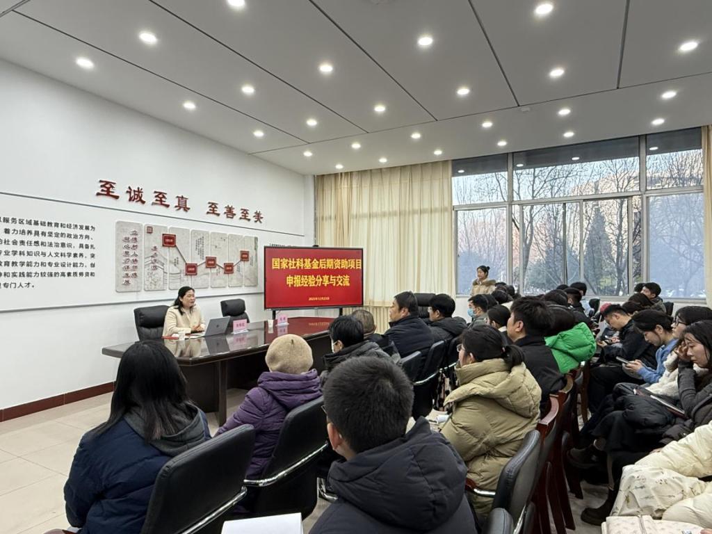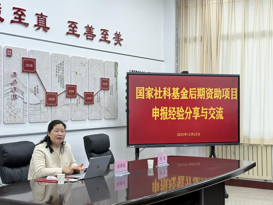 2025年12月23日,美术学院在美术楼一楼会议室召开了国家社科基金申报经验分享与交流会。会议旨在总结提炼申报经验,为我院2026年度国家社科基金项目申报工作提供坚实支撑。会议由学院党委书记连城主持,特邀嘉宾——2025年度国家社科基金后期资助项目获得者、安阳师范学院外语学院院长张荣花与大家进行了经验分享,展开了务实而深入的交流。