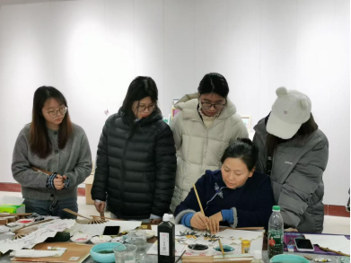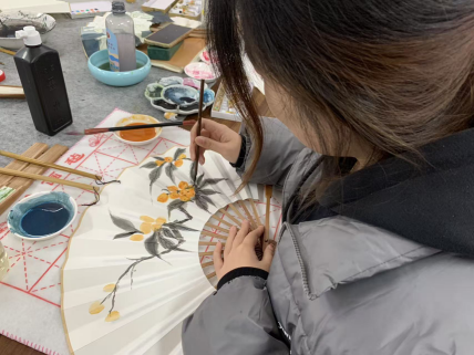 近期,美术学院创新创业讲坛特邀张素芳老师开展讲座,指导国画学生手绘扇子。