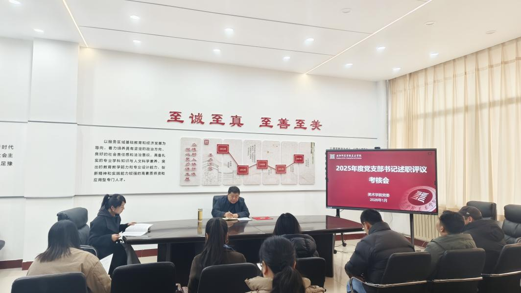为全面总结2025年度学院基层党建工作成效,进一步加强党支部书记队伍建设,1月14日下午,美术学院党委组织召开2025年度党支部书记述职评议考核会。学院党委书记连城、副书记徐洁、各师生党支部书记及支部委员参加会议,会议由学院党委书记连城主持。会上,各党支部书记围绕2025年度抓基层党建工作履职情况进行了现场述职,全面总结成绩、深入查摆问题、明确改进方向。与会人员结合述职情况和日常表现,以无记名投票方式对党支部书记进行了民主评议。