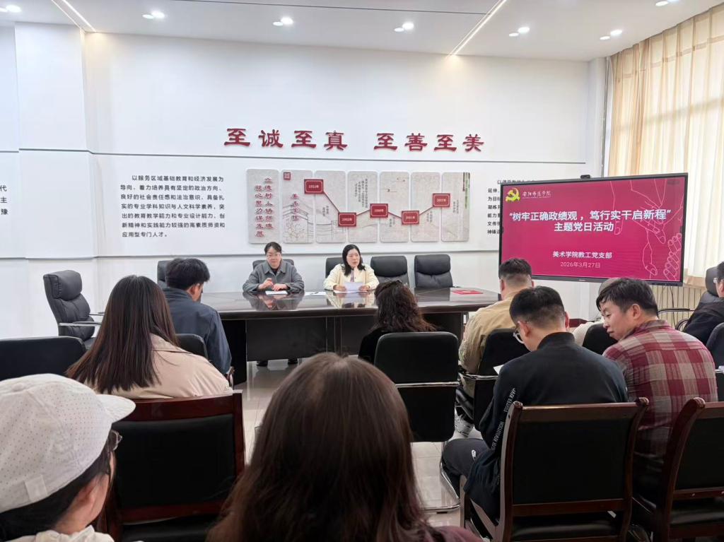 为深入学习贯彻习近平总书记关于树立和践行正确政绩观的重要论述,全面落实党的二十届四中全会精神,引导全院党员教师进一步端正发展理念、坚守育人初心、锤炼实干作风,3月27日下午,美术学院教工党支部在和园B一楼会议室开展“树牢正确政绩观 笃行实干 启新程”主题党日活动。全体党员教师参加活动,围绕学习贯彻习近平总书记关于正确政绩观的重要论述展开深入学习与交流。