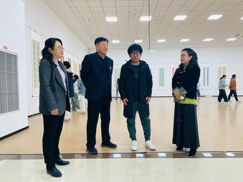 仪式上,我院副院长赵涛致辞并介绍了甲骨文艺术项目平台和此次展览,强调了此次合作对推动双方发展的重要意义。接着,副院长赵涛将“甲骨文艺术传承活化推广基地”牌匾授予安阳市图书馆馆长邓宏峰。我院国画系主任吴柯赠送了20件甲骨文书法作品和6件甲骨文宣传版面,副馆长郭松卉上台接受赠送。这些珍贵的作品将为市图书馆的美育宣传注入新的活力。仪式结束后,各位领导和师生一同前往展厅进行了参观。